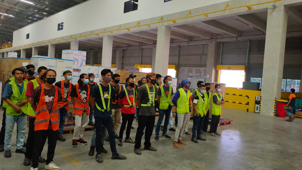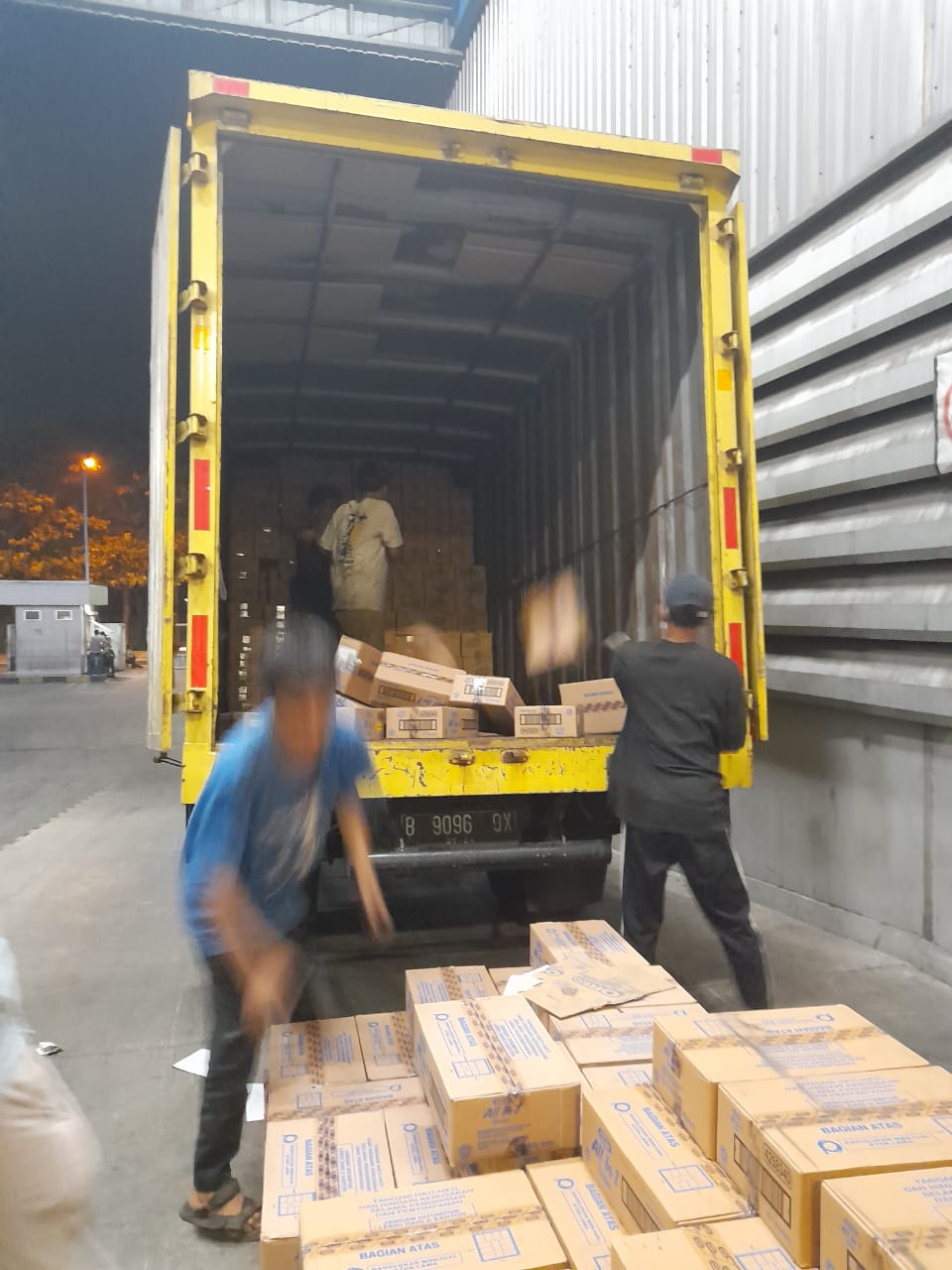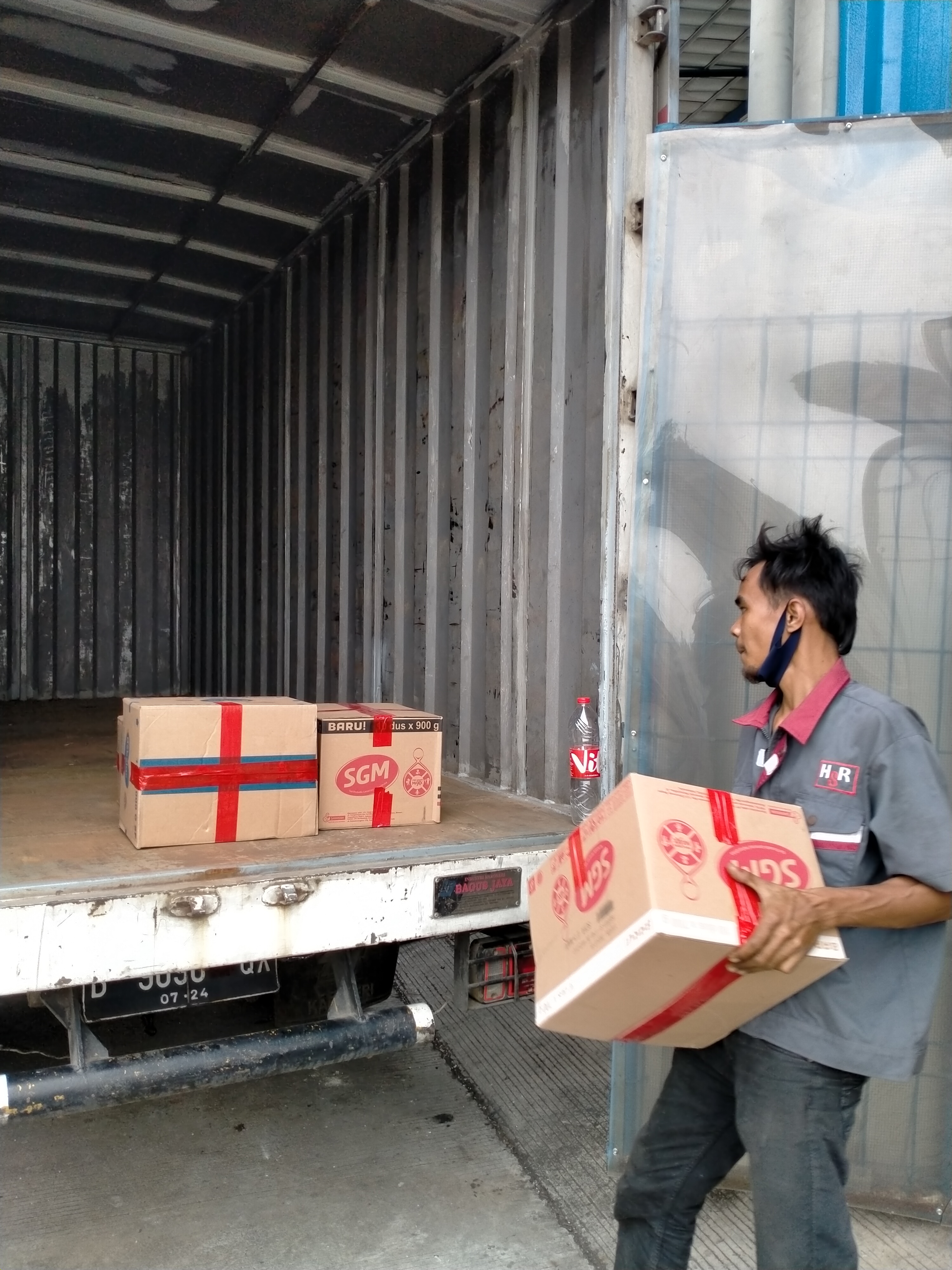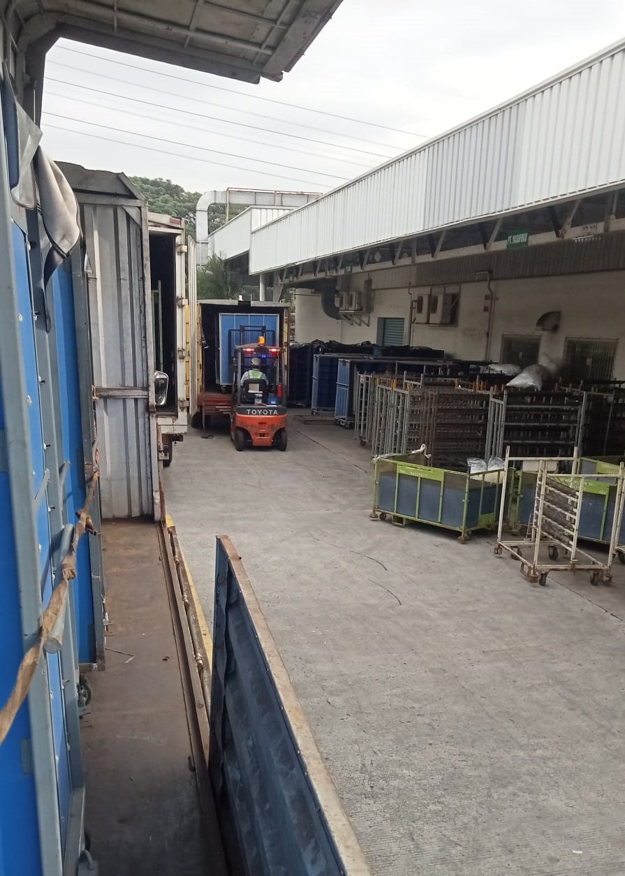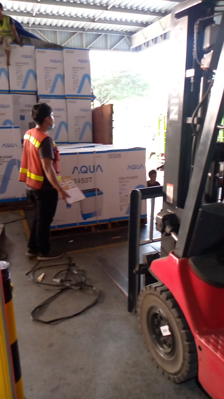 Proses memuat barang dari perusahaan untuk dikirim ke tujuan penerima.